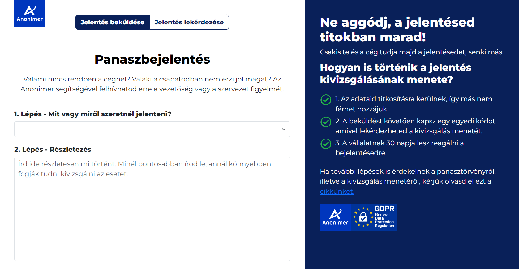 Anonimer helps to comply with the "complaint law" and the European Union directive (2019/1937 – whistleblowing directive)